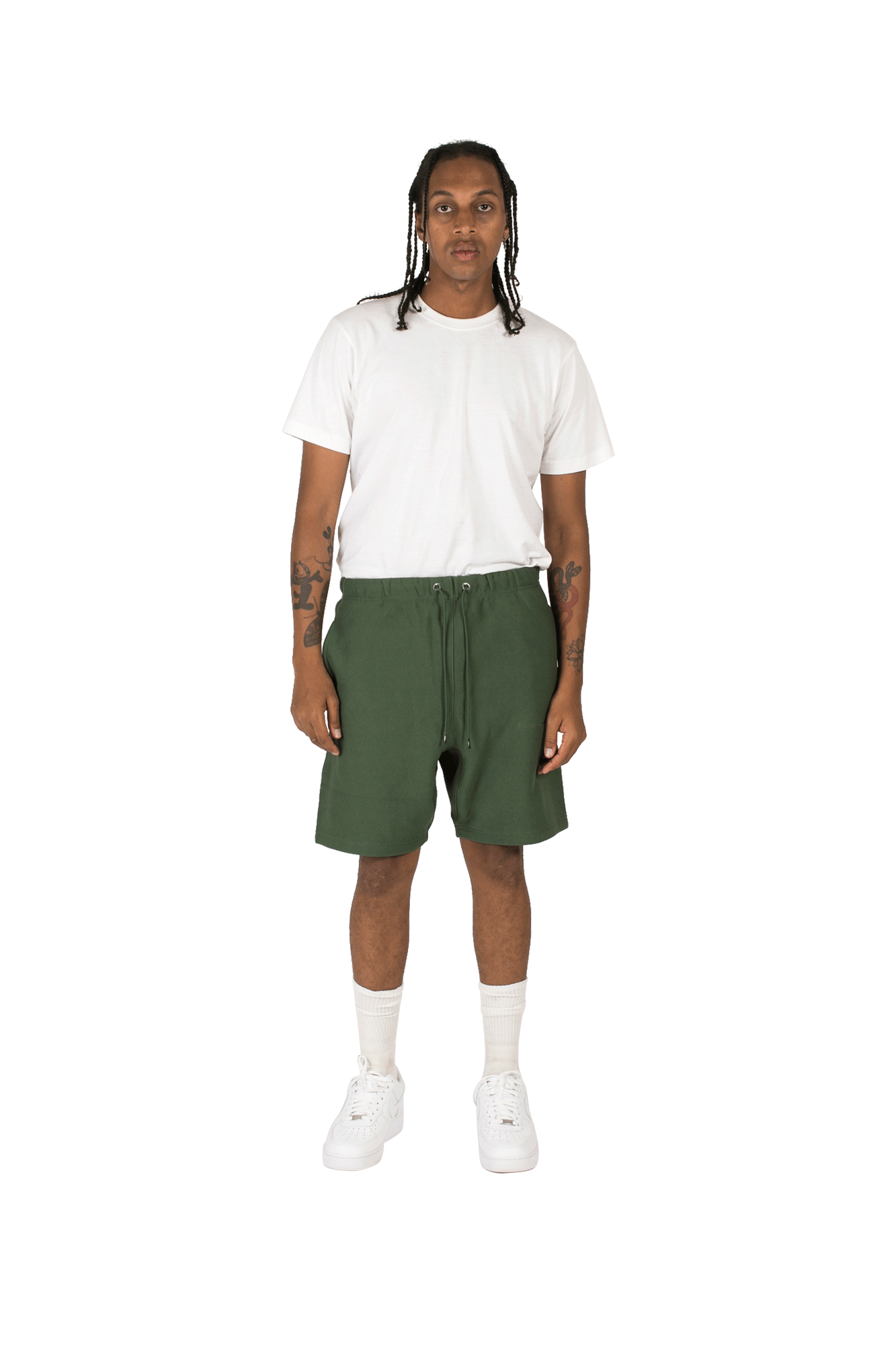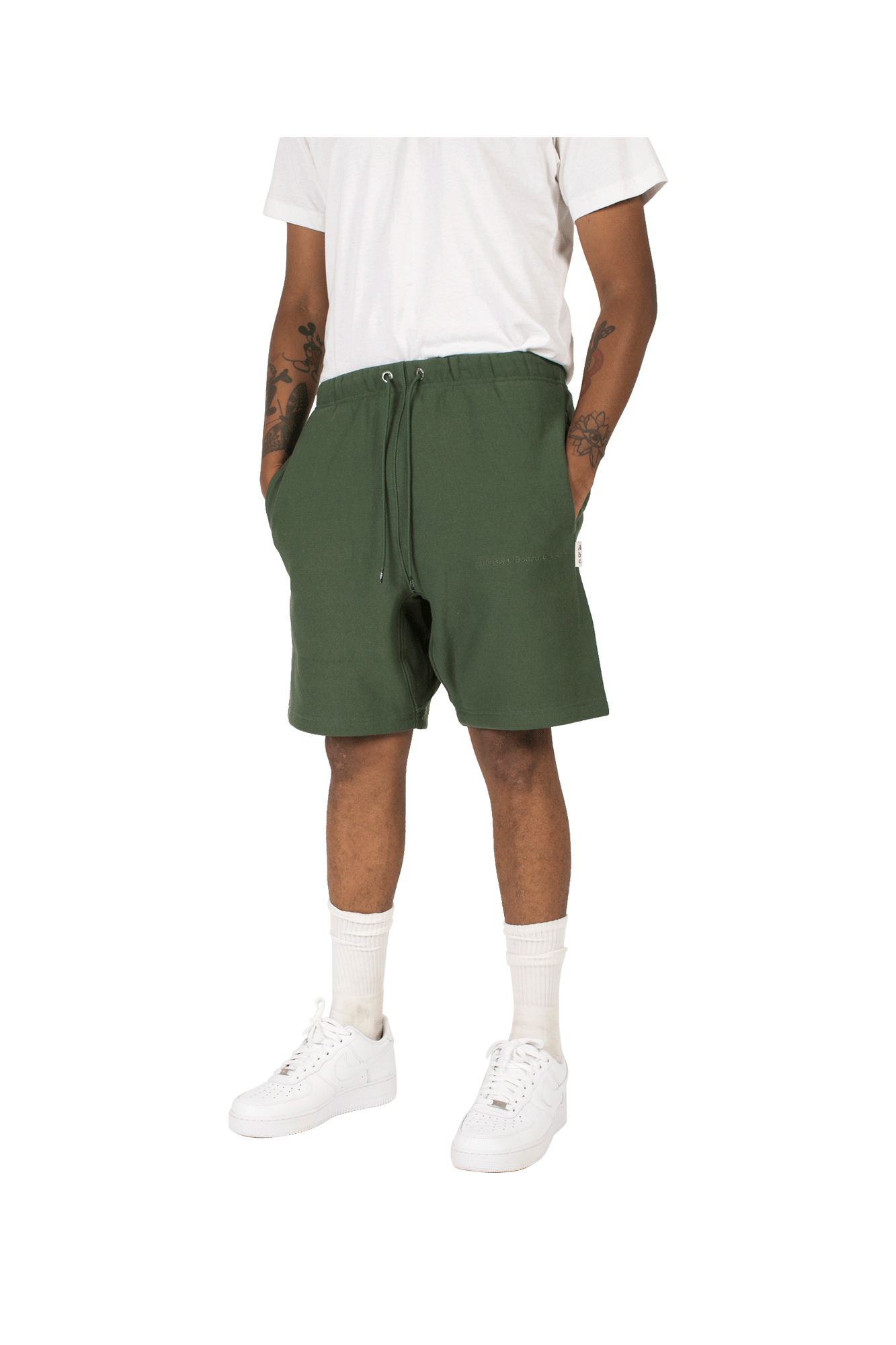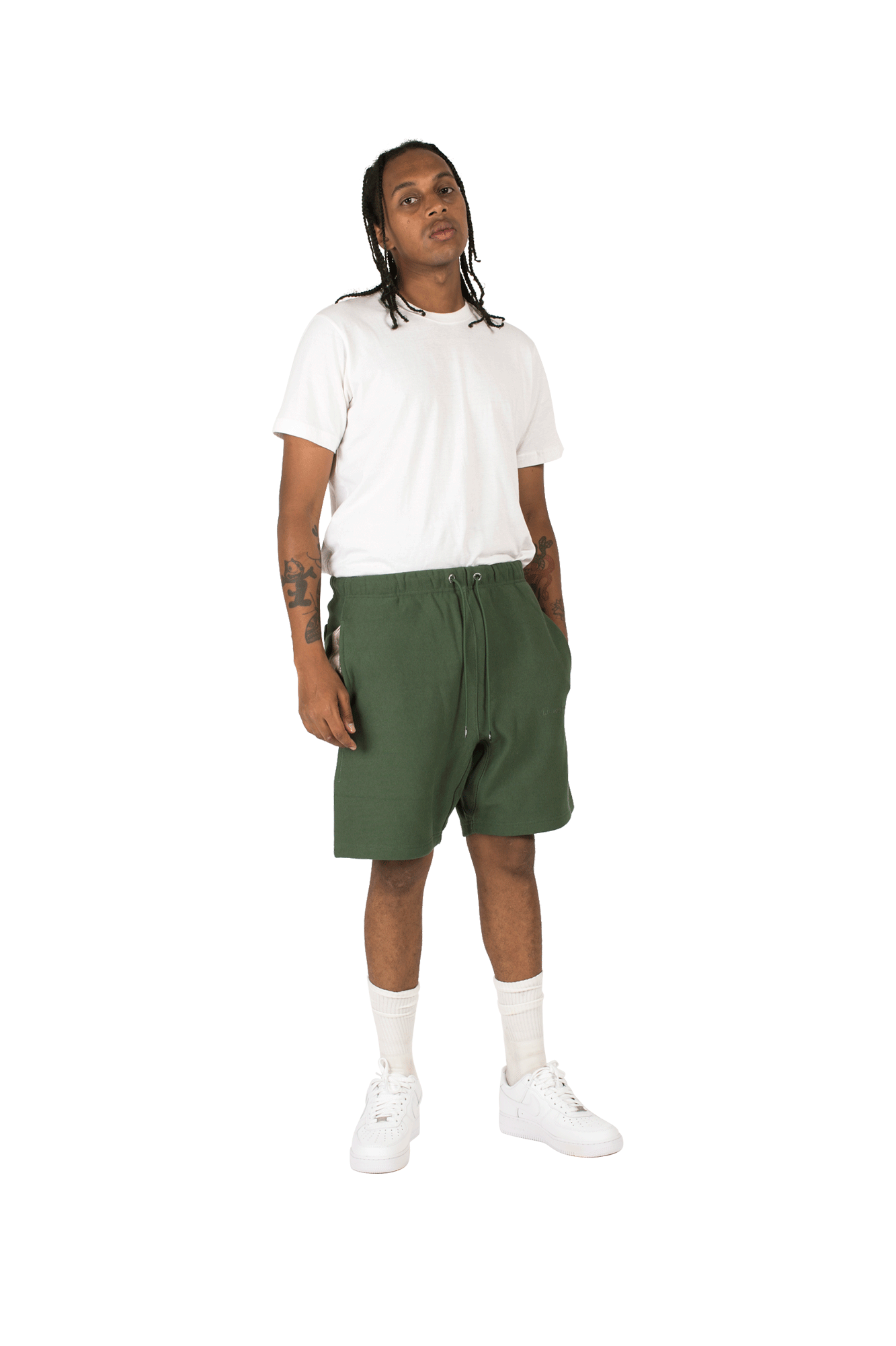 These green shorts feature an adjustable waist with drawcords. Advisory Board Crystals, an LA-based cult label founded by Remington Guest and Heather Haber in 2015 in the back of an Uber Pool, offers a line of streetwear essentials, distinctive through its custom-made fabrics, crystal-infused dyes, and impressive attention to detail. ABC. aims to convey the guise of crystals to streetwear by creating unique garments embracing the concept of “perfection of imperfections.”