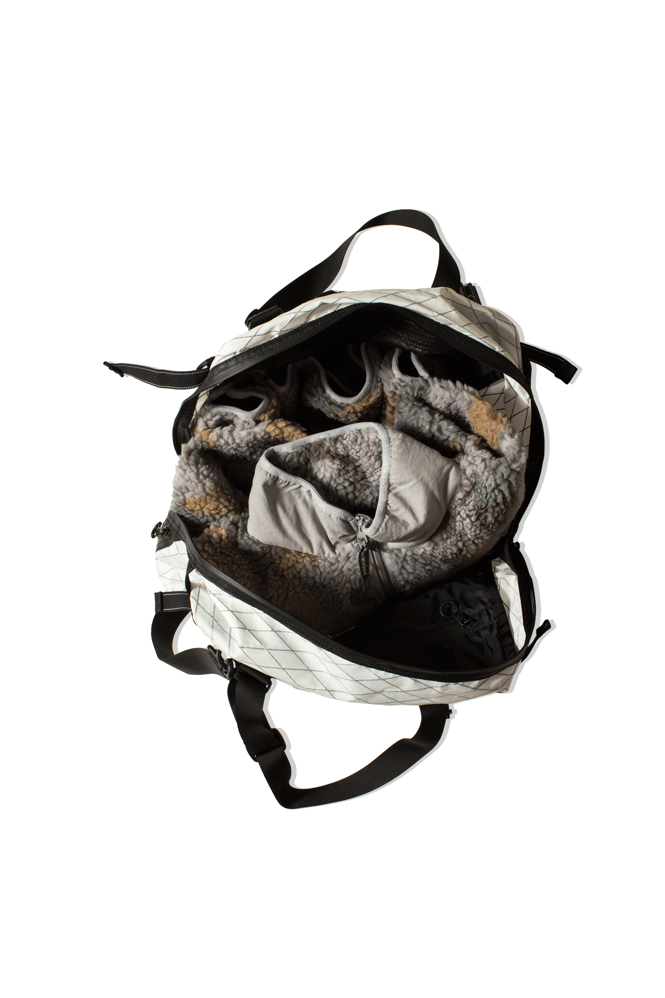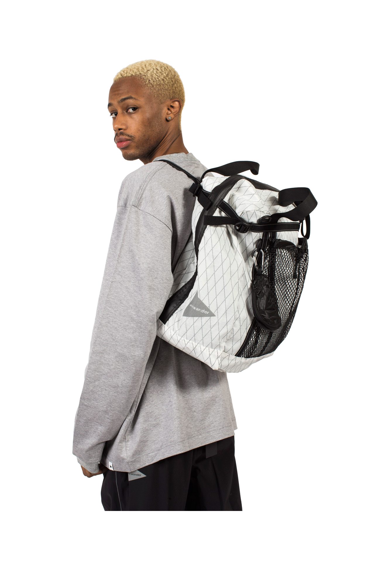 And Wander’s off-white ‘X-Pac’ bag is cut from Dimension Polyant – a durable, water-resistant fabric initially developed for sails. Paneled with silicone-coated Cordura, it has adjustable straps that allow it to be carried in hand, over the shoulder, or as a backpack. This piece has plenty of pockets and can hold up to 25 liters. The Spring/Summer 2022 collection features lightweight, practical styles in a number of nature-inspired colorways. And Wander is among the brands responsible for bringing ‘gorpcore’ to light – a movement that saw utilitarian clothing find its place in mainstream fashion. Founded by former Issey Miyake protégés, Keita Ikeuchi and Mihoko Mori, the label is known for its functional, contemporary designs that work in urban and outdoor environments alike.