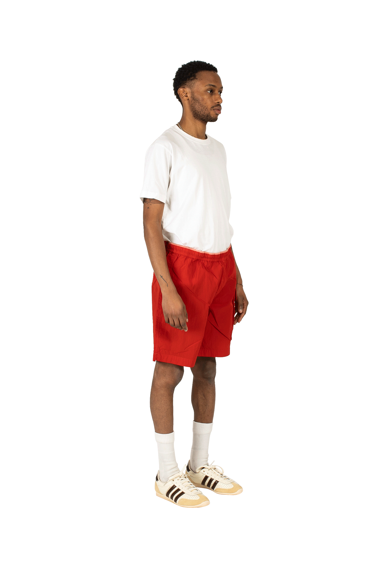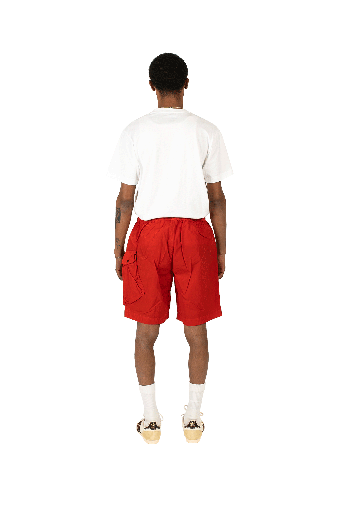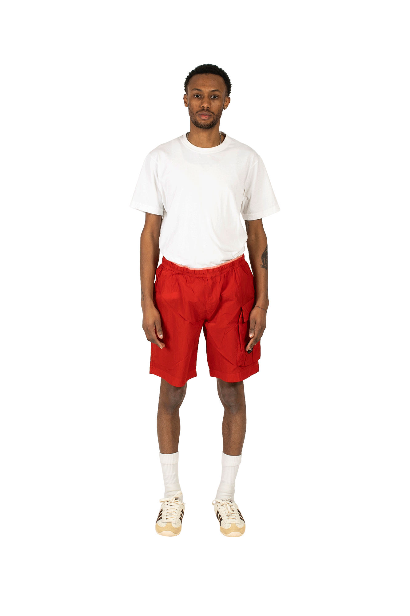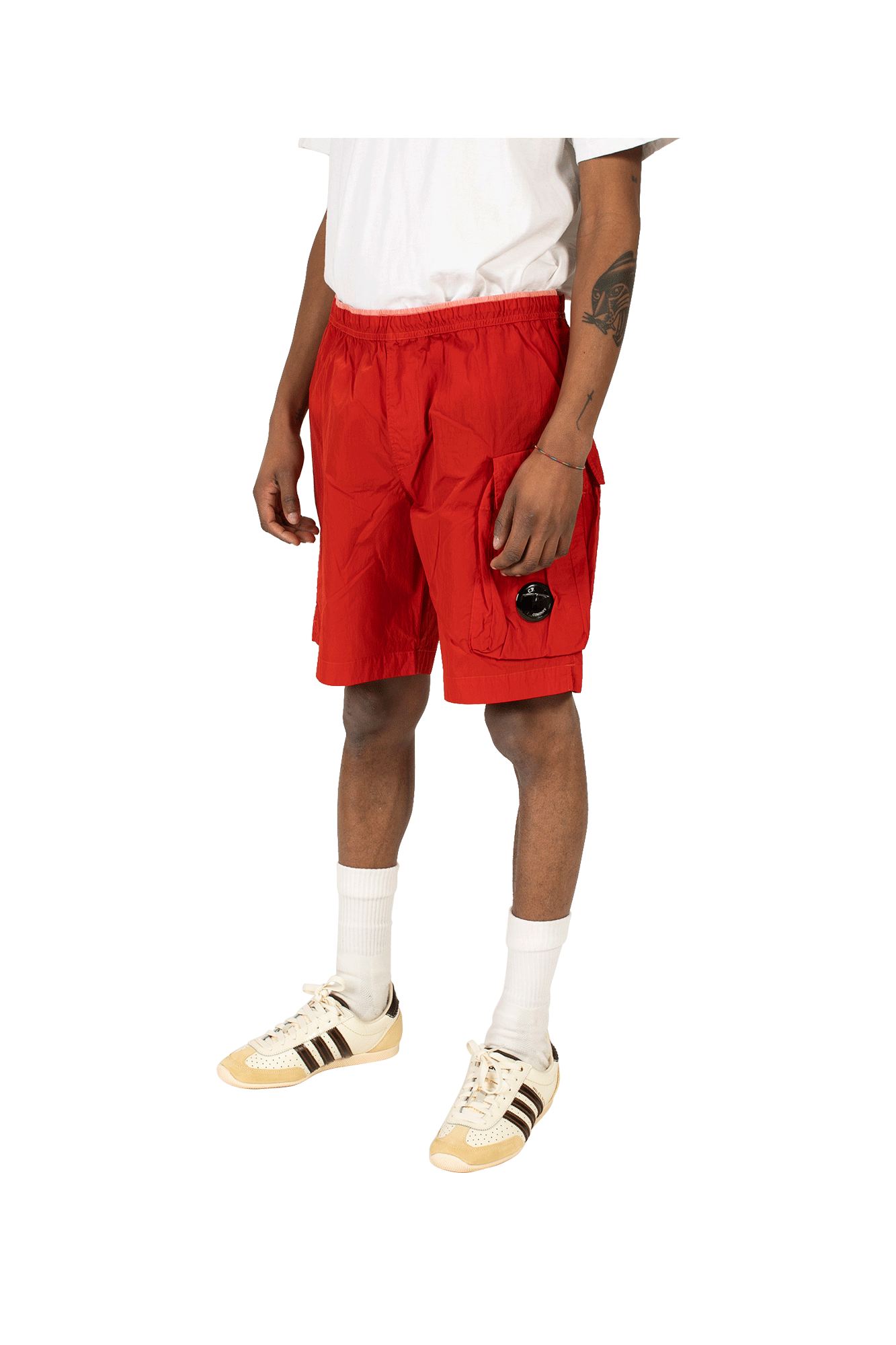 C.P. Company’s red shorts are cut from the brand’s signature Chrome fabric – the woven multifilament nylon is inspired by military-grade materials and offers a barrier against water and wind. This pair has an elasticated drawstring waistband and single flap pocket. The Spring/Summer 2022 collection is dominated by practical pieces available in a whole host of new colorways. C.P. Company is an Italian sportswear label founded by the legendary Massimo Osti in 1971. The brand puts a lot of research into product development and specialises in highly functional clothing. Experimenting mainly with military garments and workwear, C.P. Company is known for its innovative, complex, and cutting-edge crafting techniques.