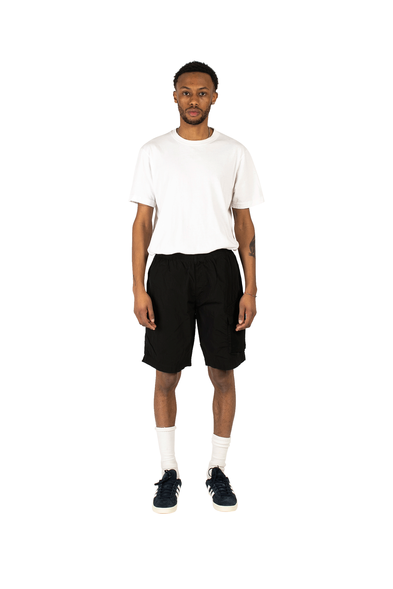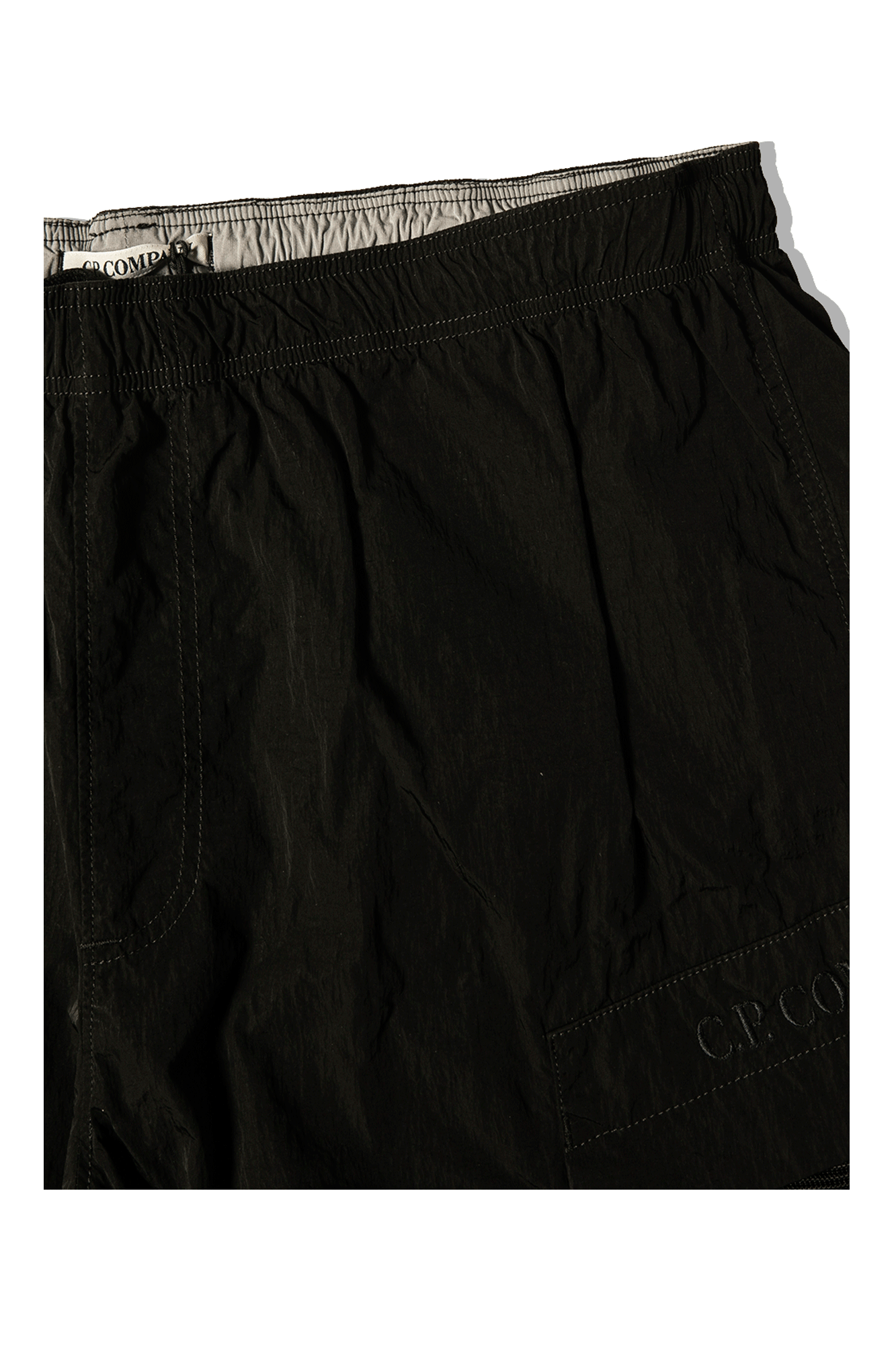 C.P. Company’s black swim shorts are cut from the brand’s signature Chrome fabric – the woven multifilament nylon is inspired by military-grade materials and is light, resilient, and quick-drying. This pair has an elasticated drawstring waistband and sizeable side pocket. The Spring/Summer 2022 collection is dominated by practical pieces available in a whole host of new colorways. C.P. Company is an Italian sportswear label founded by the legendary Massimo Osti in 1971. The brand puts a lot of research into product development and specialises in highly functional clothing. Experimenting mainly with military garments and workwear, C.P. Company is known for its innovative, complex, and cutting-edge crafting techniques.
