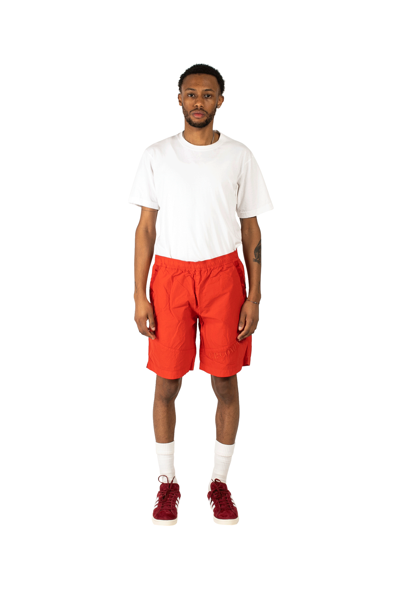 C.P. Company’s red shorts are cut from the brand’s signature Flatt nylon – a sanding process gives the fabric a soft, matte finish, so it feels broken-in. This pair has an elasticated drawstring waistband for a comfortable fit. The Spring/Summer 2022 collection is dominated by practical pieces available in a whole host of new colorways. C.P. Company is an Italian sportswear label founded by the legendary Massimo Osti in 1971. The brand puts a lot of research into product development and specialises in highly functional clothing. Experimenting mainly with military garments and workwear, C.P. Company is known for its innovative, complex, and cutting-edge crafting techniques.