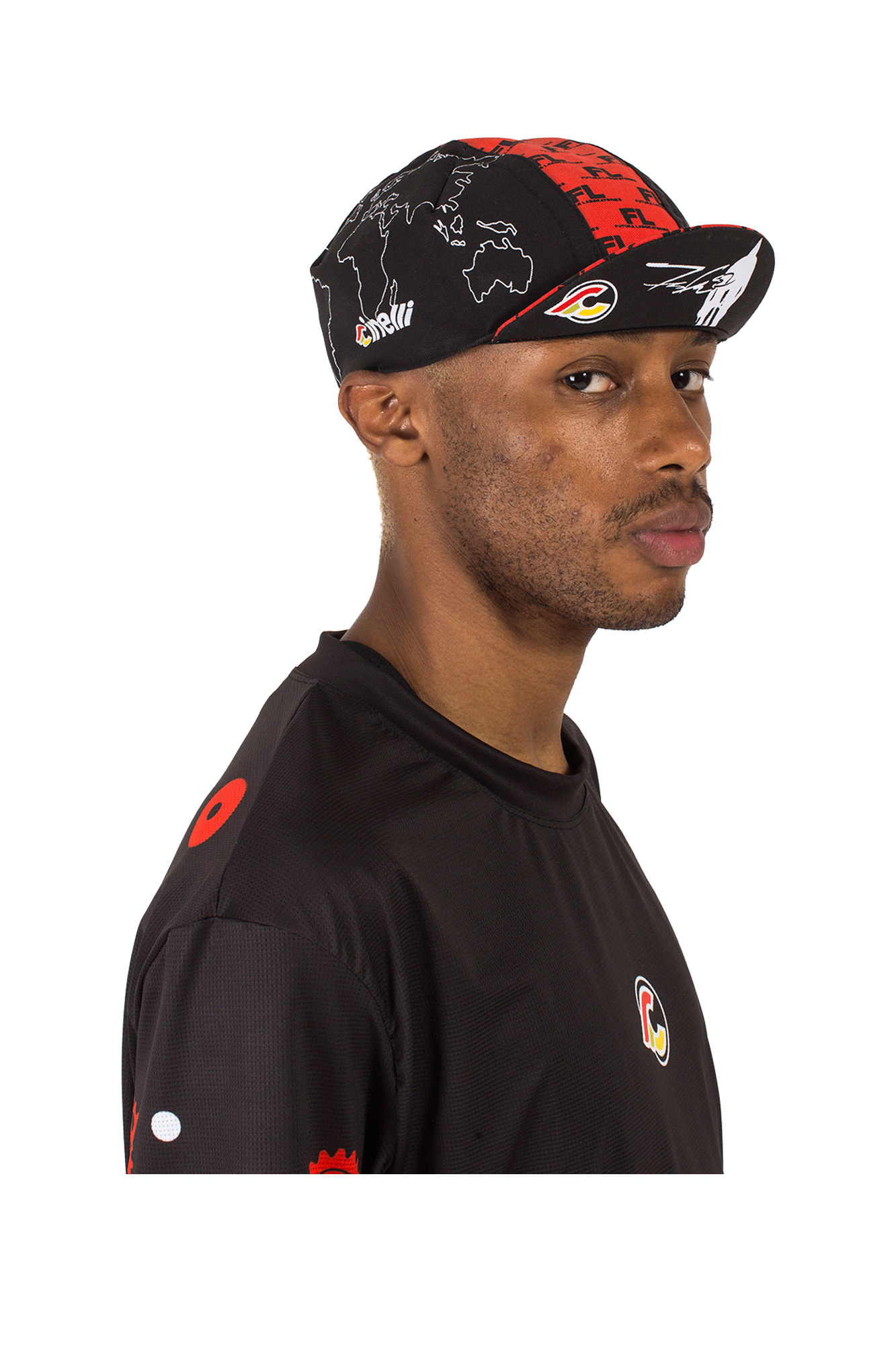 The graphic design recalls the stylized atoms that are one of the artist’s persistent motifs, here appropriately turned into cogs and bicycle gears. The name “Domestiq%E2%80%9D is a celebration of a central character in the road cycling epic, the Domestique, the rider who works for the benefit of their leader, rather than trying to win the race. It reflects Futura’s love for classic World Tour cycling. Futura collaboration with Cinelli Art Program comes from afar. From the enthusiasm for cycling, from Keith Haring’s Rampichino, from New York messengers, from the street culture.