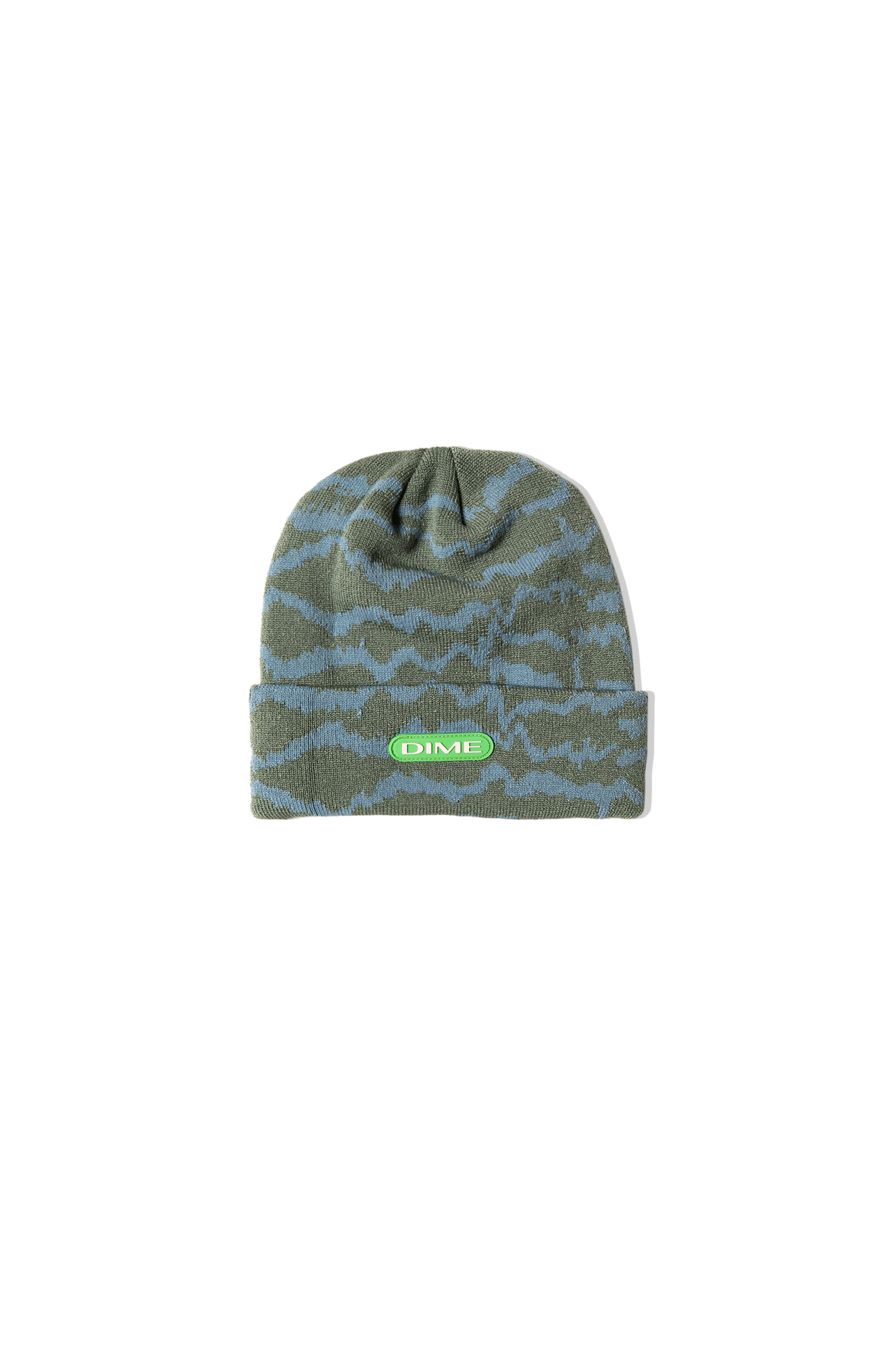 This gray and light blue beanie features an abstract pattern with horizontal irregular lines and a label tied on the front. Dime is a Canadian skate brand founded by Phil Lavoie, Vince Tsang, and Antoine Asselin. When it was initially created in 1994, it went by the name ‘Dimestore’ as a tribute to Lou Reed’s ‘Dime Store Mystery’. Over the years, it became one of the most exciting streetwear labels out there. The crew’s rebellious, non-conformist spirit is always present in the brand’s designs.