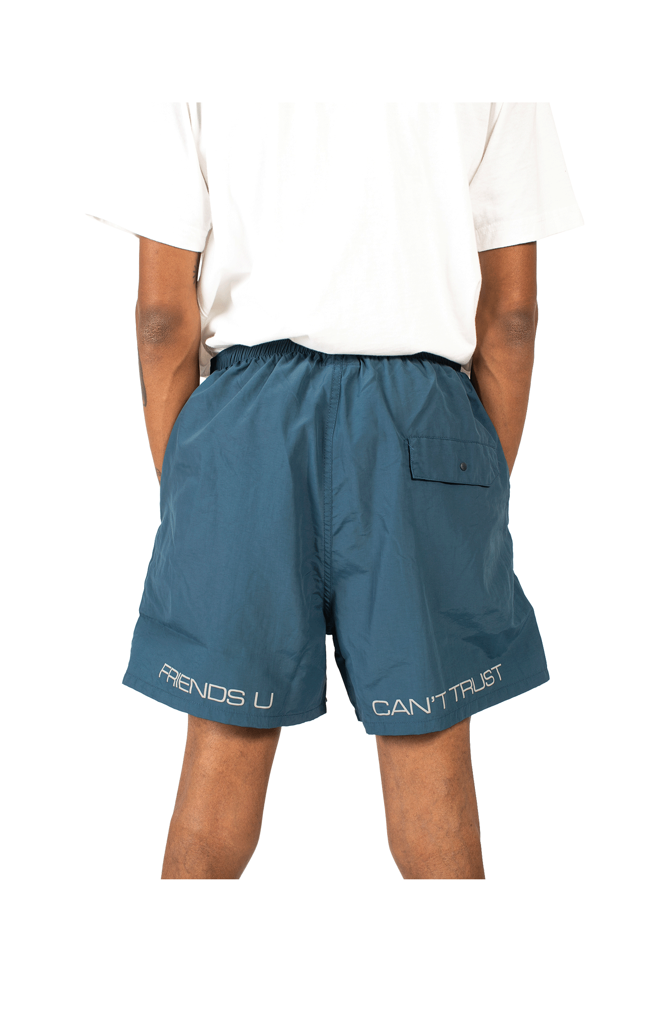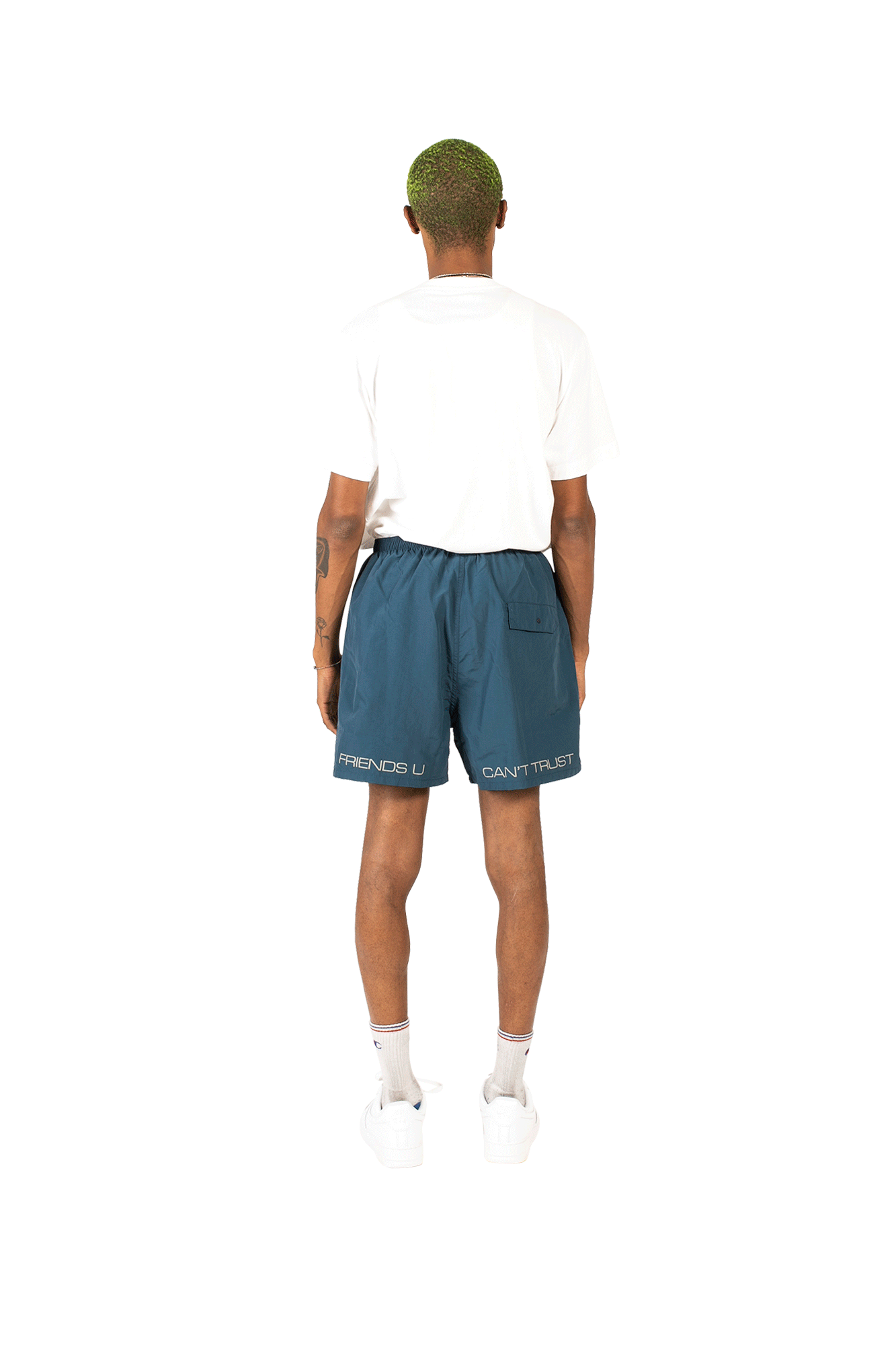 These blue shorts feature an elasticated waistband, two side pockets, a logoed label stitched on the left edge, a patch pocket with a snap button on the back on the right and on the back edges there is a gray writing ‘friends u can’t trust’ . Fuct, standing for “Friends U Can’t Trust,” is a streetwear brand founded in Los Angeles by Erik Brunetti and Natas Kaupas. Pronounced “fuck*d,%E2%80%9D the brand uses controversial graphics concerning both political and religious themes. Even today, after three decades of existence, it’s still considered a cult brand in the streetwear scene.