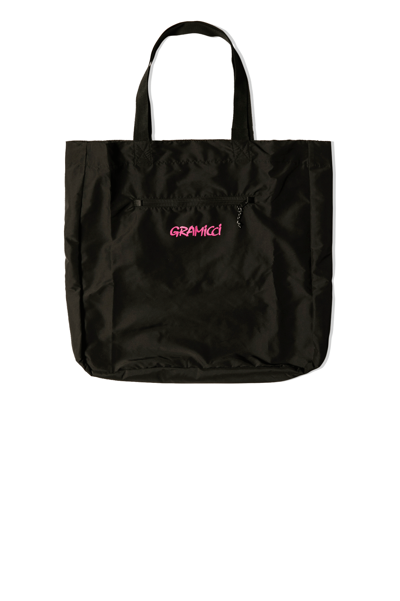 Gramicci’s tote bag is made from weather-resistant black shell and printed with the brand’s logo in contrasting pink letters. It’s designed to be packable and features a gear loop so that it can be attached to your belongings with a carabiner. Born in the 1980s, Gramicci changed the perception of mountaineering clothing over the years. The label finishes its pieces with functional elements like integrated belts – details that haven’t gone unnoticed by skaters and surfers. Gramicci collaborates with different notable brands like mastermind JAPAN.