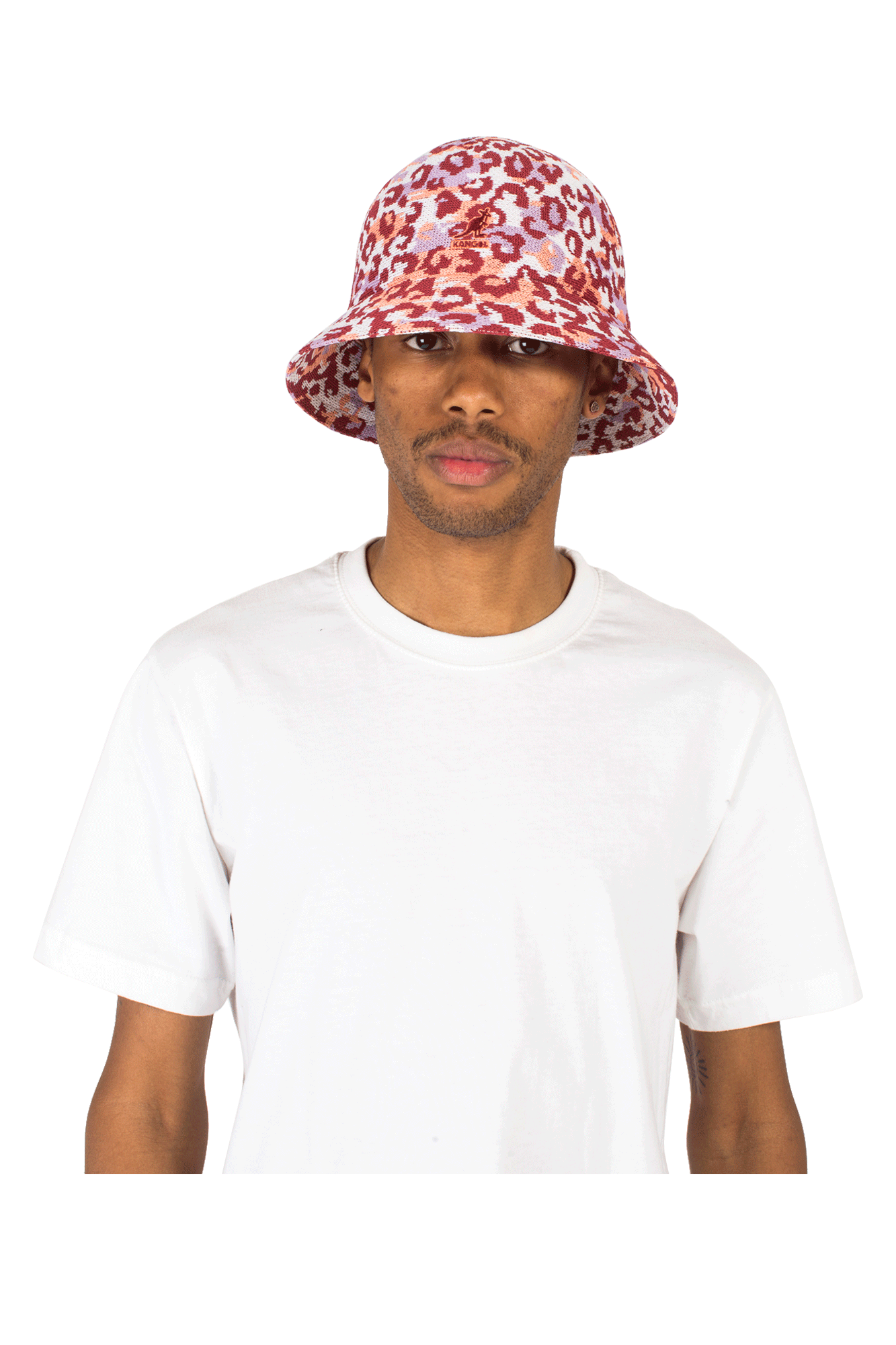 This bucket hat features an all-over animalier and camo pattern and the embroidered logo on the front. Kangol is an English brand born in 1938, famous mainly for its hats. The name derives from their iconic logo, a kangaroo, so iconic that in the past they were known as “kangaroo’s hats”. In the 1960s they were very fashionable especially in England and were often seen on celebrities like Princess Diana and the Beatles. In the following decades it became an icon of the hip-hop scene, used by artists of the caliber of Run-DMC, Notorious B.I.G. and LL Cool J. The iconic brand bucket hat, with his bell-like shape, is proposed here in a leopard pattern in lavender, black and white.