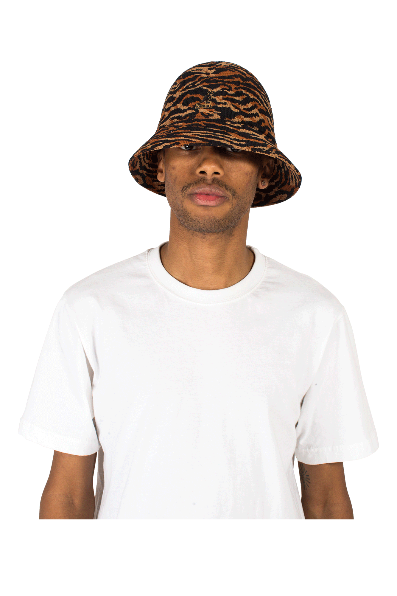 In the 1960s they were very fashionable especially in England and were often seen on celebrities like Princess Diana and the Beatles. In the following decades it became an icon of the hip-hop scene, used by artists of the caliber of Run-DMC, Notorious B.I.G. and LL Cool J. The brand’s iconic bucket, with its bell shape, is re-proposed here in a tiger pattern.