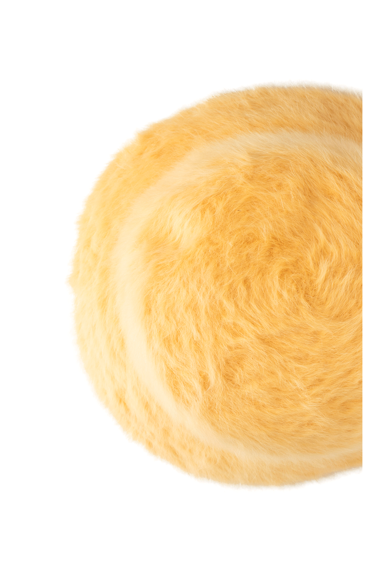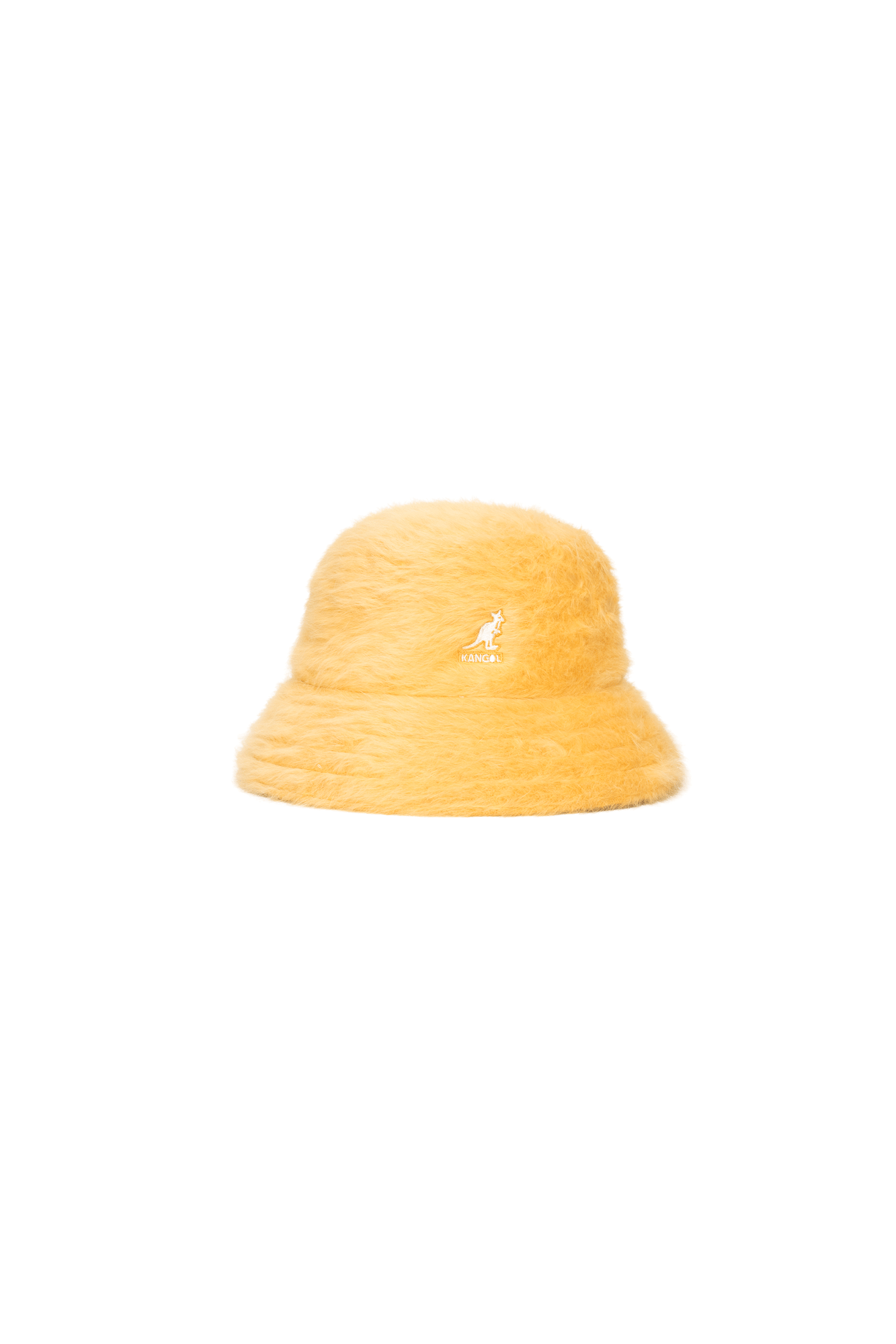 Kangol cloche made of yellow-colored angora blend and decorated with the iconic logo embroidered in contrast in white on the front. Lined interior. In the 1960s, Kangol was the brand of choice for England’s fashionable society, with their headwear often seen on celebrities like Princess Diana and the Beatles. It became an icon of the hip-hop scene in the following decades, used by artists of the caliber of Run-DMC, Notorious B.I.G., and LL Cool J.