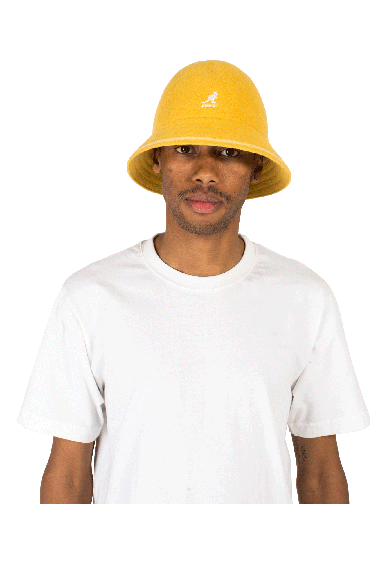 In the 1960s they were very fashionable especially in England and were often seen on celebrities like Princess Diana and the Beatles. In the following decades it became an icon of the hip-hop scene, used by artists of the caliber of Run-DMC, Notorious B.I.G. and LL Cool J. This yellow bucket hat features the classic design that made the brand iconic revisited with the addition of a white stripe near the end of the visor and the iconic logo white the kangaroo embroidered on the front in white.