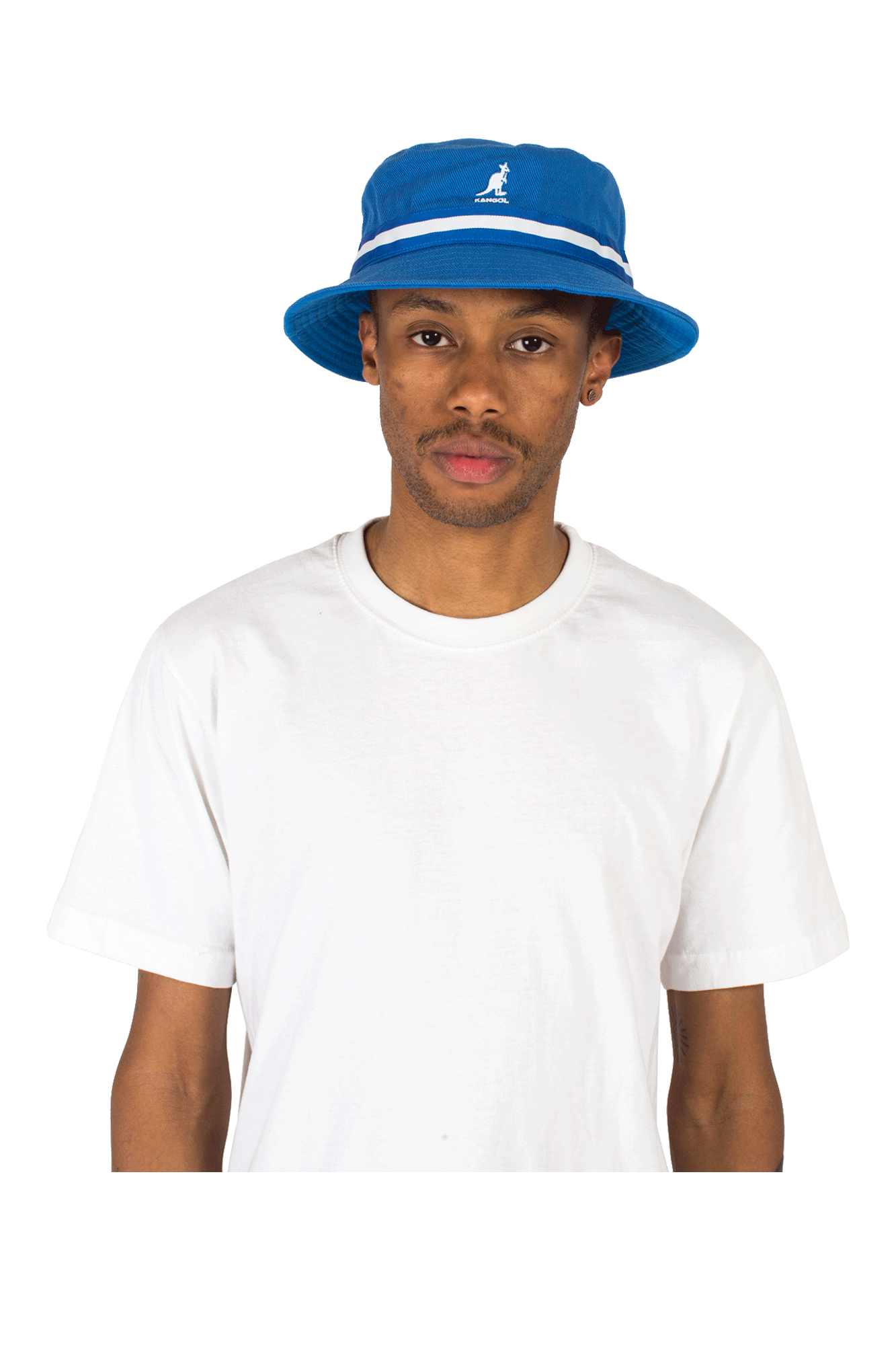 This blue bucket hay features a white stripe and the embroidered logo on the front. Kangol is an English brand born in 1938, famous mainly for its hats. The name derives from their iconic logo, a kangaroo, so iconic that in the past they were known as “kangaroo’s hats”.In the 1960s they were very fashionable especially in England and were often seen on celebrities like Princess Diana and the Beatles. In the following decades it became an icon of the hip-hop scene, used by artists of the caliber of Run-DMC, Notorious B.I.G. and LL Cool J.This light blue bucket hat features a blue and light blue fabric stripe near the visor and the iconic kangaroo logo embroidered on the front.