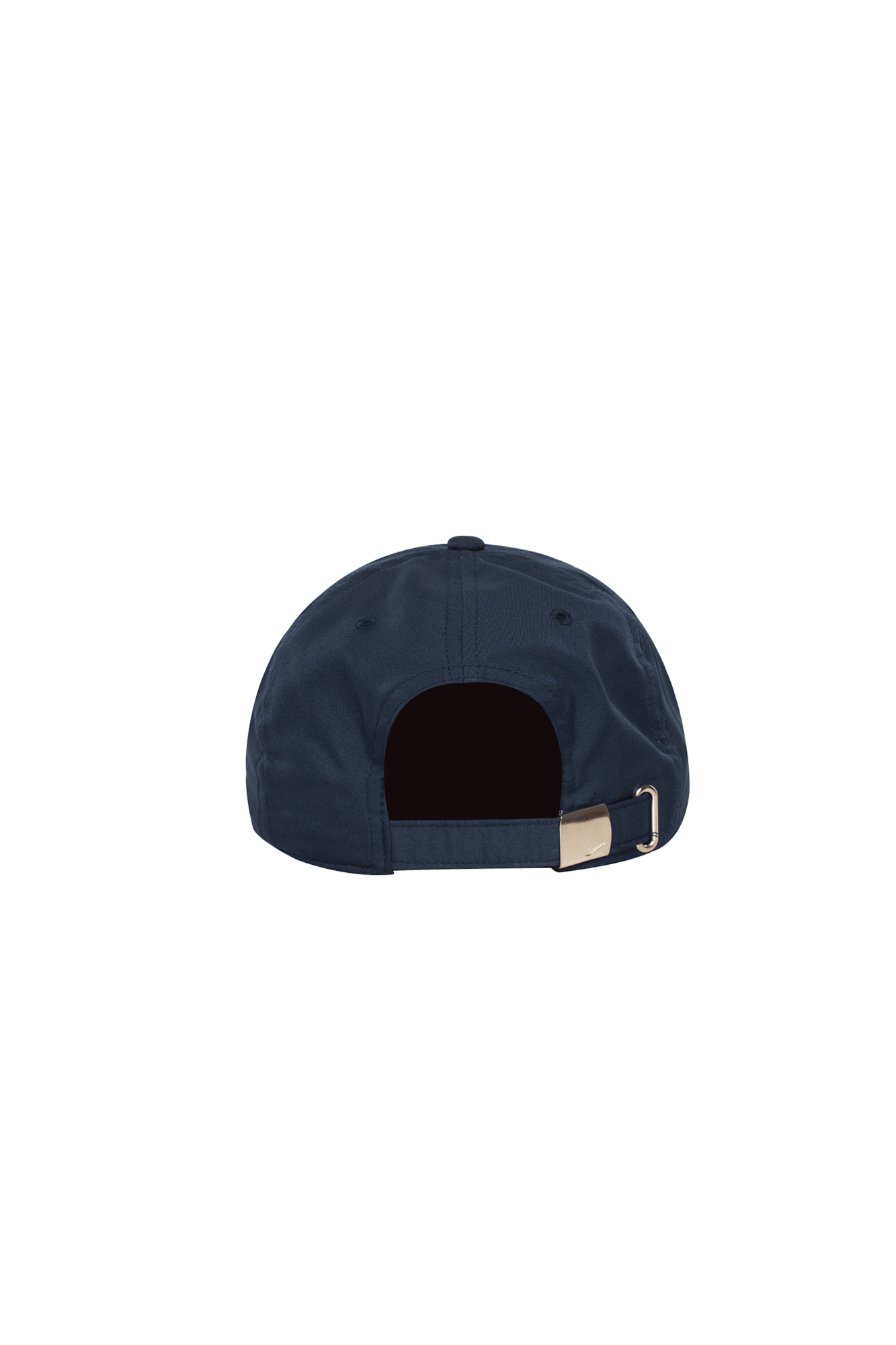 Classic cap in dark blue synthetic fabric by Nike with small metallic swoosh. Nike is among the most recognizable sportswear labels in the world. What started out as a brand that equipped athletes with performance-drive gear soon became a go-to for a number of youth cultures. Today, Nike’s signature ‘Swoosh’ emblem is commonplace on the streetwear scene.