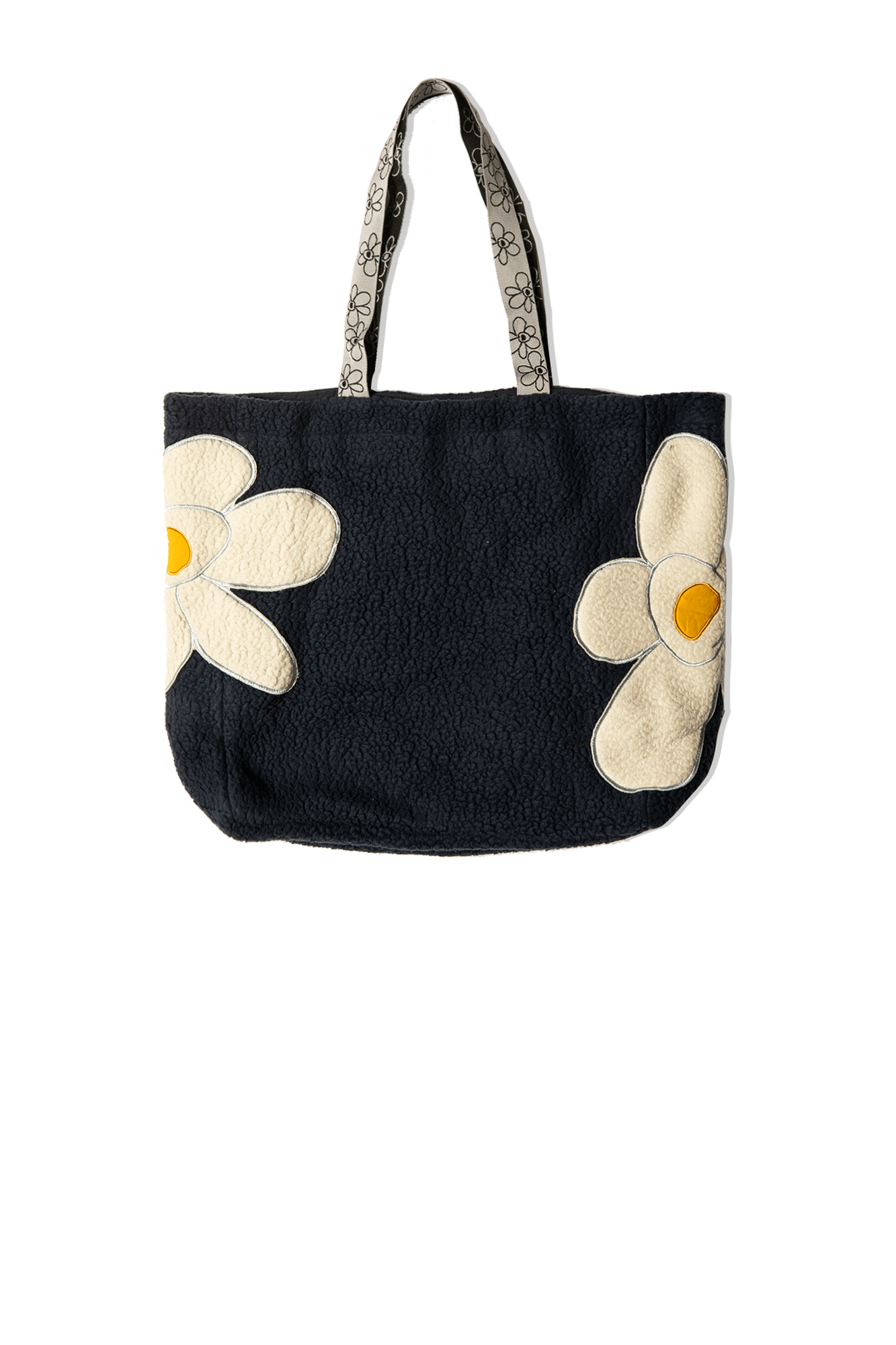 This blue and white tote bag in 100% recycled Polartec® sheepskin fleece features two large white daisies on the sides, the same design is repeated on the handles, in custom “Gesture” fabric, there is an internal zip pocket and a snap button closure . 100% recycled polyester. Defining Perks and Mini exclusively as a streetwear brand would be an understatement. Founded in Melbourne in 2000 by husband and wife Misha Hollenbach and Shauna Toohey, the name is the union of their respective graffiti tags. Over the years, they gained more and more fans worldwide thanks to their cutting-edge design and carefree style.