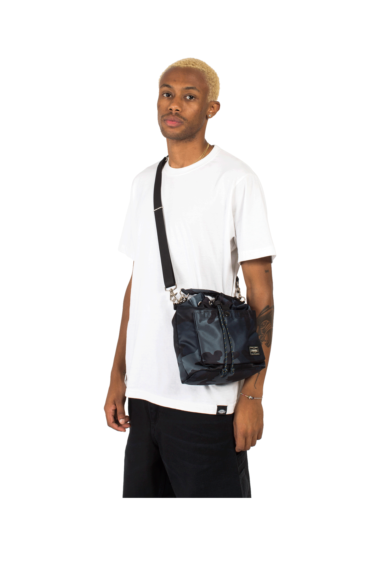 This blue camouflage nylon belt bag features a front pocket with snap button, a lace closure, adjustable shoulder strap and a patch with the brand logo sewn on the front. A Japanese classic, the accessories by Porter-Yoshida & Co stand out for their aesthetics and quality: in fact the timeless design and functionality of each product blend perfectly with the “Made in Japan” production, characterized, in this case, by the use of nylon, which guarantees its impermeability.
