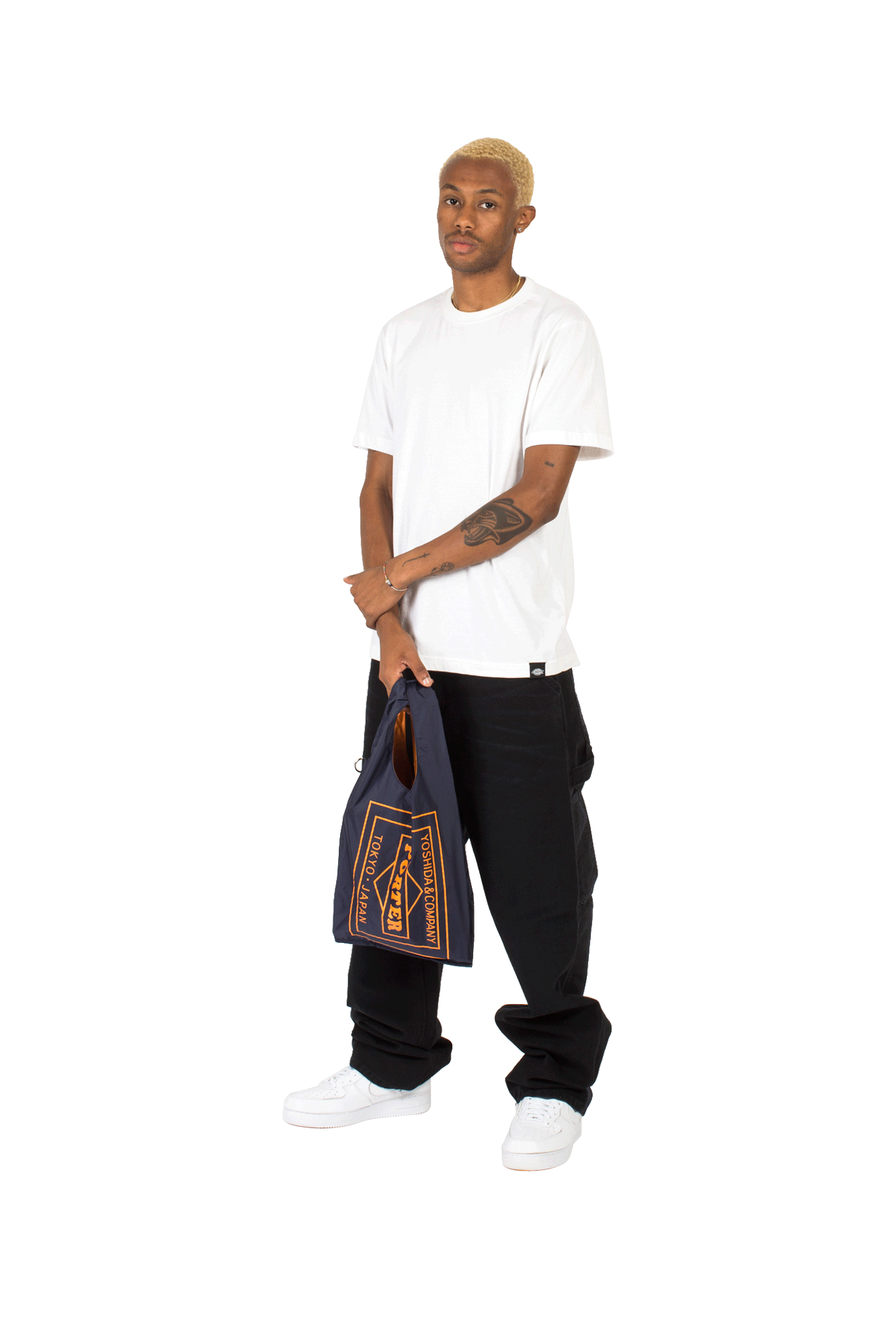 This navy hand grocery bag features a classic tote design, it features a branded snap button closure at the top, an external pocket with snap button closure and a branded label. On the back an orange logoed graphic. The bag also comes with an orange envelope that holds the bag for easy carrying and packing. A Japanese classic, the accessories by Porter-Yoshida & Co stand out for their aesthetics and quality: in fact the timeless design and functionality of each product blend perfectly with the “Made in Japan” production, characterized, in this case, by the use of nylon, which guarantees its impermeability.