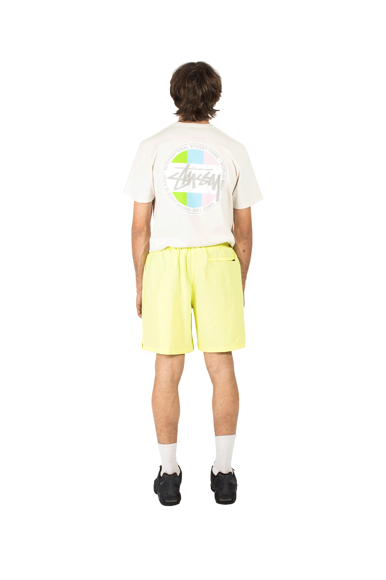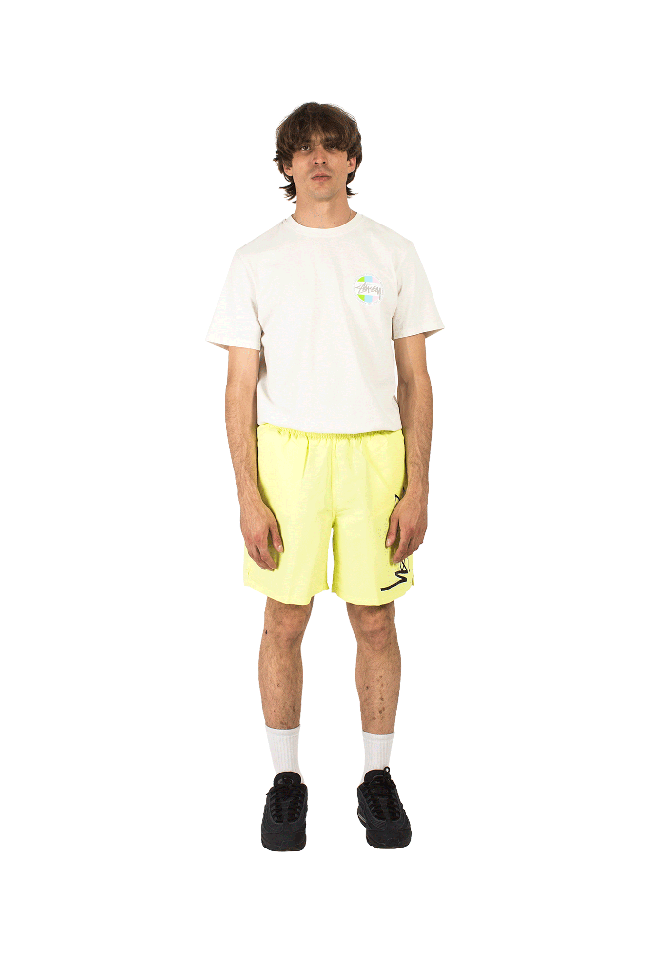 This yellow swimsuit features a logo print on the left leg, two side pockets and an adjustable waist. Stussy was founded in the 80s by Shawn Stussy, initially born as a surfer brand in California, thanks to Shawn’s captivating lettering and graphics the brand achieved success in the early 90s, as one of the first streetwear brands known throughout the United States. In the following years, Stussy became one of the most renowned brands around the world, with a cult following from Japan to Europe, thanks to classic designs, logoed graphics and a timeless style.