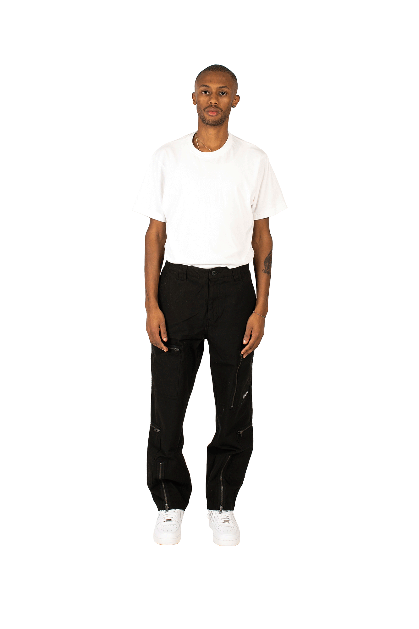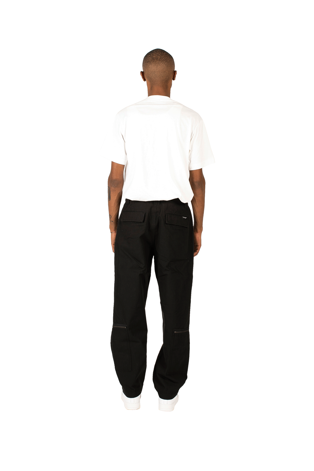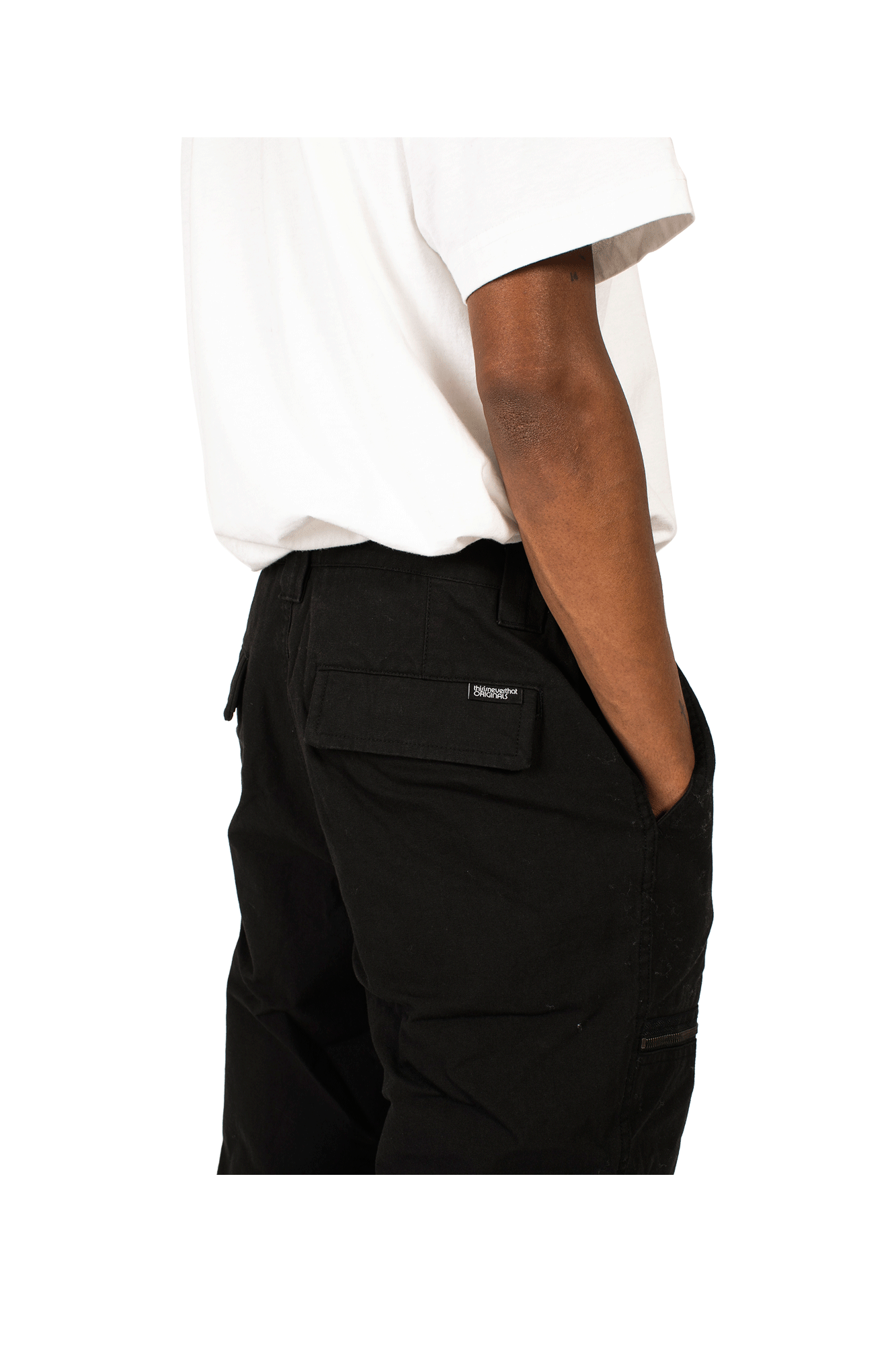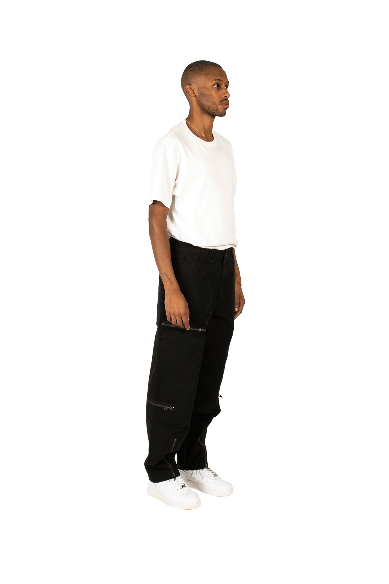 These black cargo pants have an over fit, two back patch pockets two and six front pockets, two side and four on the legs with zip closures, the pocket on the left thigh has a label tied thisisneverthat original and frontally at ankle height there are other two hinges. Launched in 2010 and worn by both the mainstream and the underground Asian musical scene, it has become one of the most influential brands in Asia, basing its style on heavy graphics and texts.